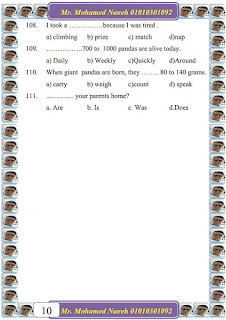 اختبار على مقرر شهر مارس اللغة الانجليزية الصف السادس الابتدائى الترم الثانى اختيار من متعدد